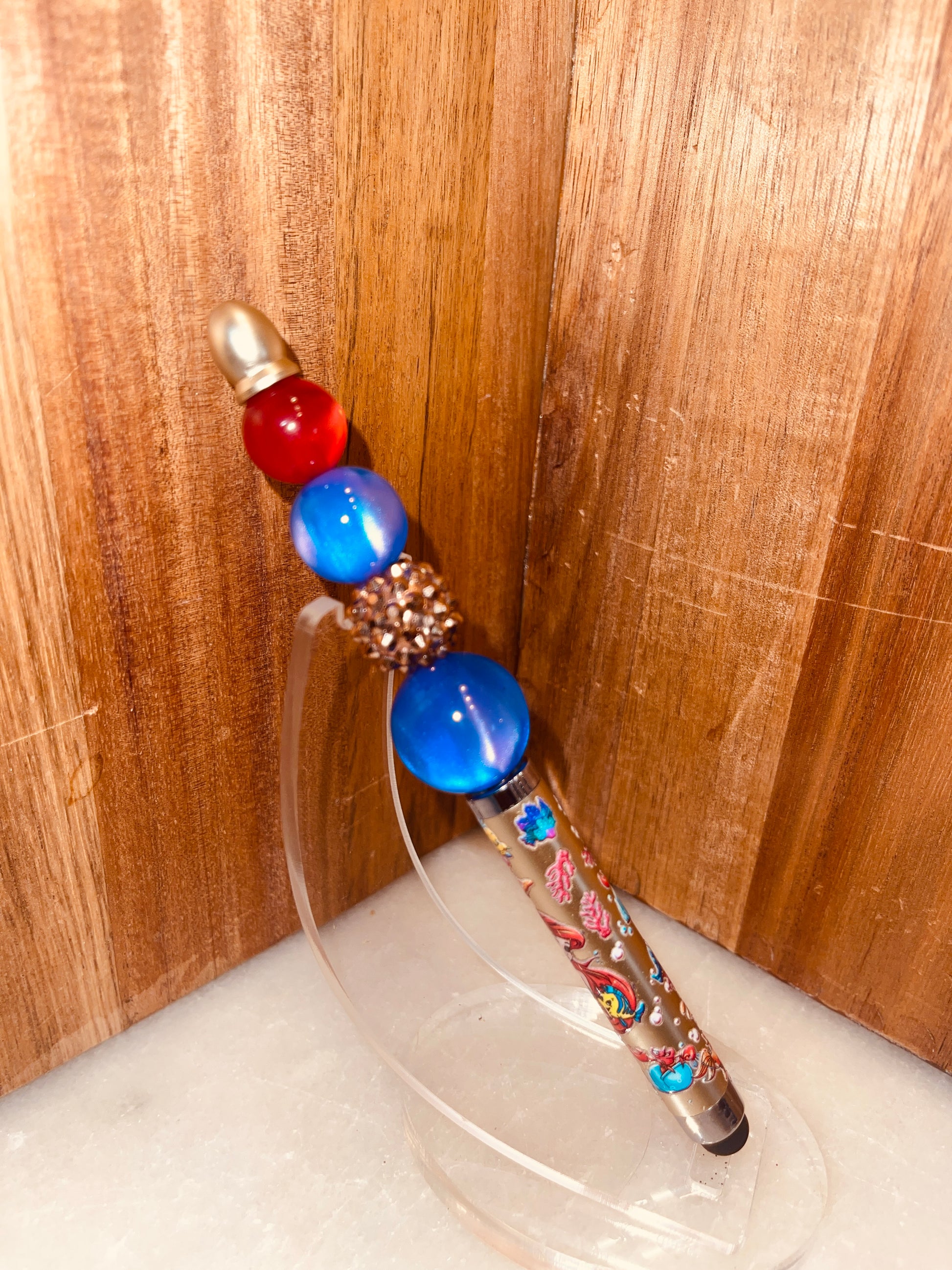Pretty and unique Gold Fish Girl, Bubblegum Bead Stylus Pen