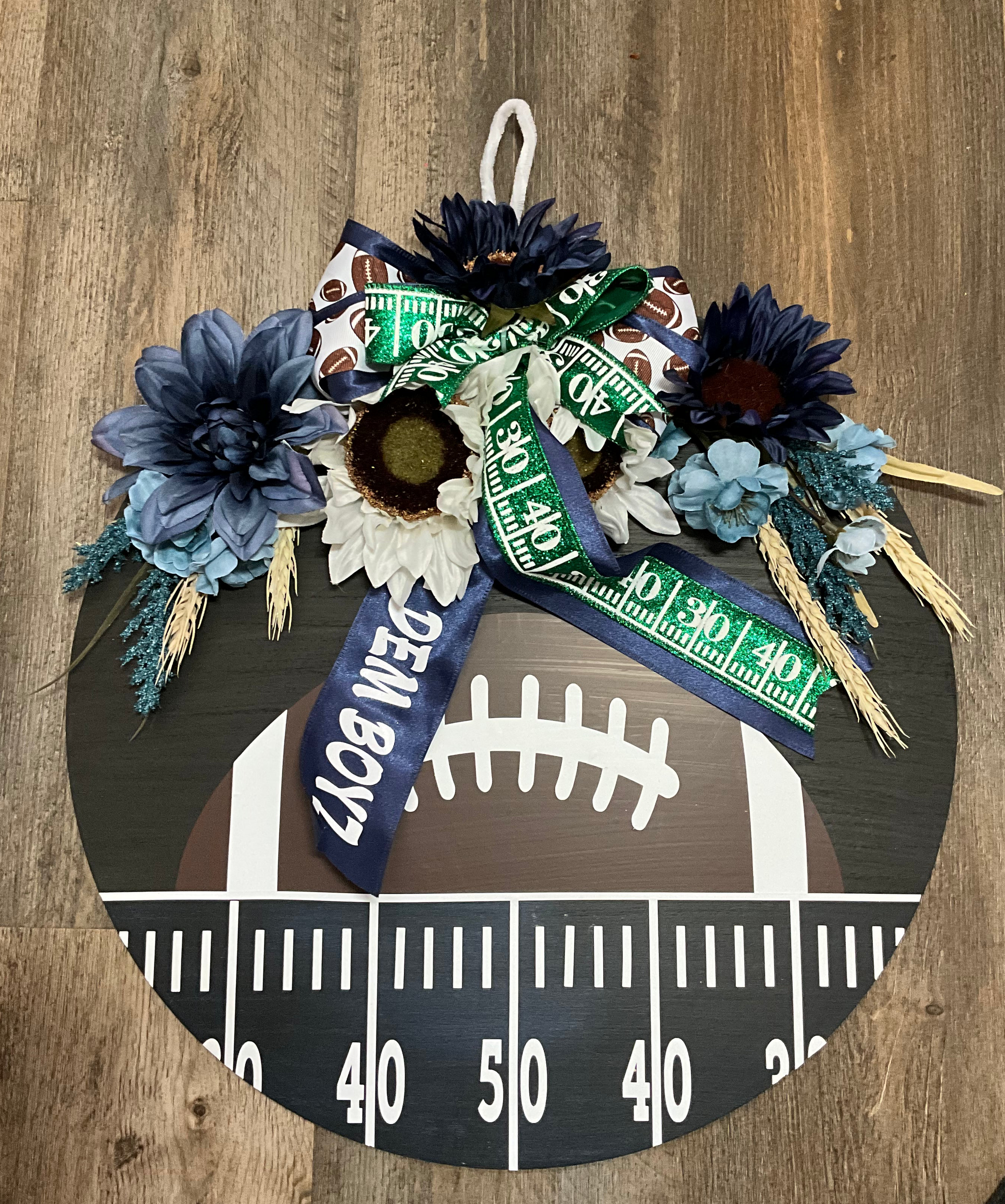All of our signs are made from 18” Wooden Circle Plaques. Each wood sign will vary slightly from the pictures above. Also please note that although the same stain/paint is used on the sign, different woods are going to soak/stain differently so colors may be slightly different than the original.